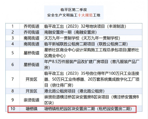 2、项目荣获“临平区第二季度安全生产文明施工十大规范工地”。