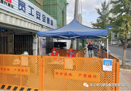 杭政储出【2021】52号地块项目(晓月映翠)在“百日攻坚”及“二十大”检查期间,非常重视施工现场门岗防疫管控,组成了由1名监理单位和1名施工单位专职防疫人员,轮岗进行值班。上班高峰期时,增加管理人员进行门岗管控,要求每一位员工“出示3天内健康码→扫工地码→实名制登记”后,从主大门员工道闸通道内排队进入施工现场,严禁任何人从其余入口进出,该举措得到了市监督总站的认可。