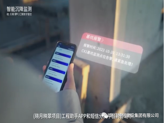 另外,该项目还是首个采用电子基坑检测系统的项目,在面对基坑危大工程时,基坑电子监测会进行实时数据采集,并将数据实时传输至“集团智慧平台、项目数据平台、设备管理平台、质监站集控平台”,以加强前线的管控。如果现场出现基坑倾斜,项目管理层也将在第一时间收到短信并采取措施,此举大大降低了基坑坍塌的风险。